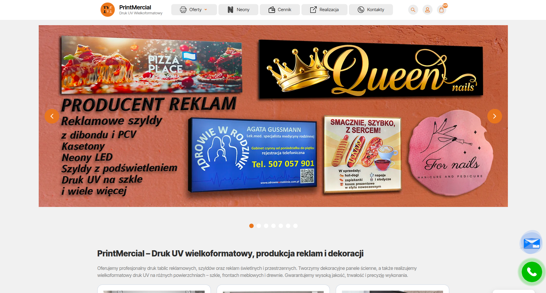 Ми створили потужний e-commerce веб-сайт для Print Mercial — професійної друкарні, що спеціалізується на UV-друку великого формату, рекламних банерах, сітках mesh, а також друці на склі, дереві та металі. Головним завданням було розробити онлайн-платформу, здатну обробляти широкий спектр параметрів замовлення та автоматично розраховувати вартість продукції залежно від вибору клієнта.